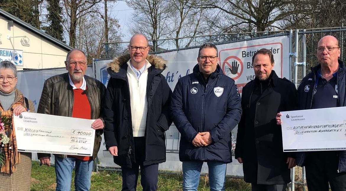 Auf dem Foto ist die U15 II vom SV Schlebusch mit seinen beiden Trainern Carsten Ellinghaus und Tobias Balduan zu sehen. Zur symbolischen Spendenübergabe hat Manuel Bast von der Bürgerstiftung…